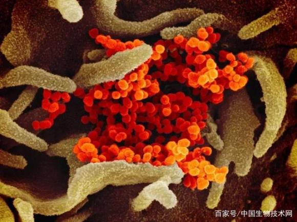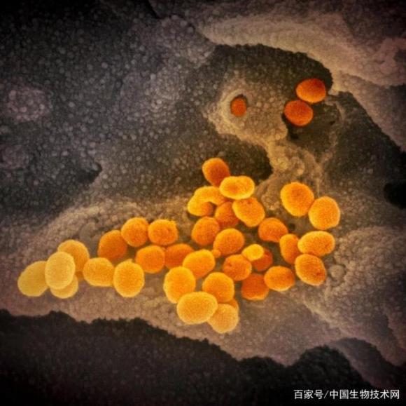 掃描顯微鏡圖像:橙色的部分就是引發新冠肺炎的冠狀病毒。