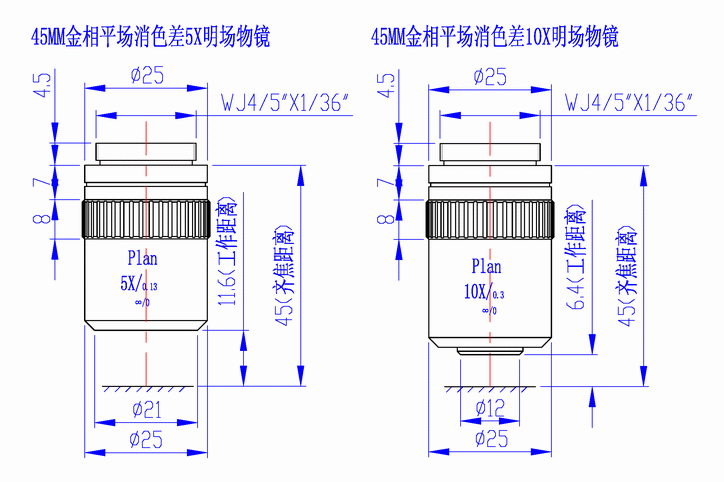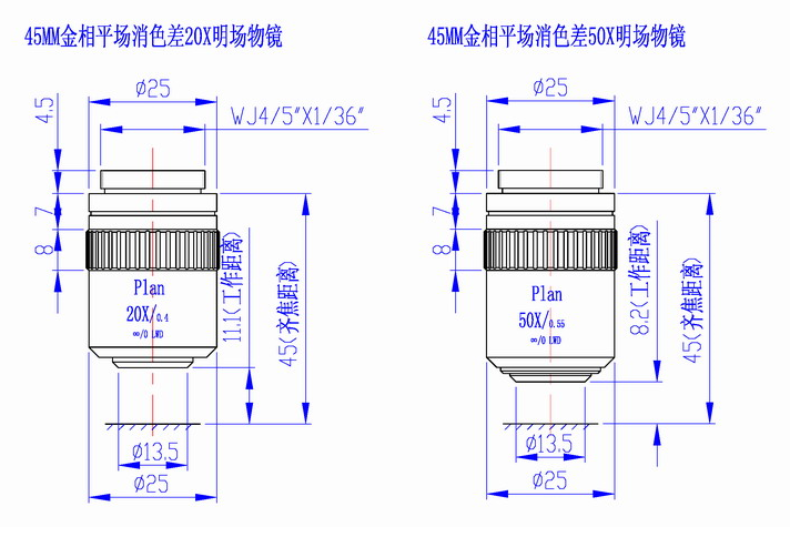 45MM金相長工作距離明場物鏡系列